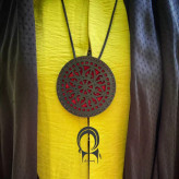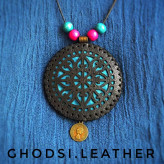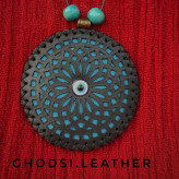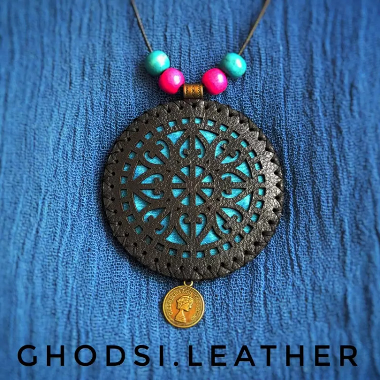 کیف دعا و گردن آویز دوخته شده از چرم طبیعی ،دستدوز ، قابل اجرا در رنگهای مختلف ، دارای فضای مخفی برای دعا و حرز ، داخل کیف مشخص نیست قسمتهای طرحدار دارای آستر می باشد