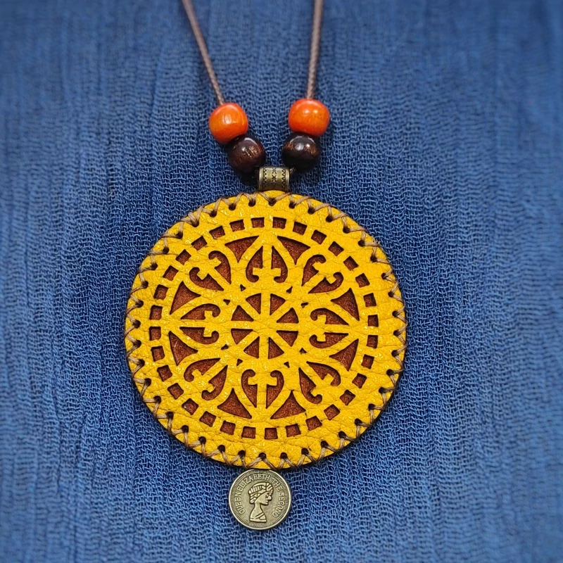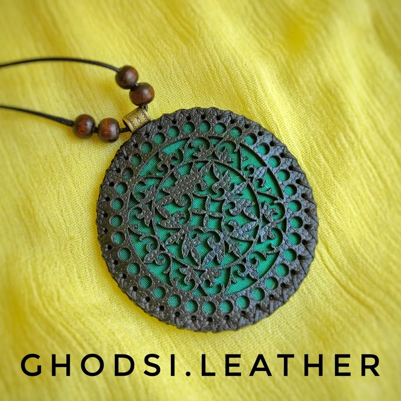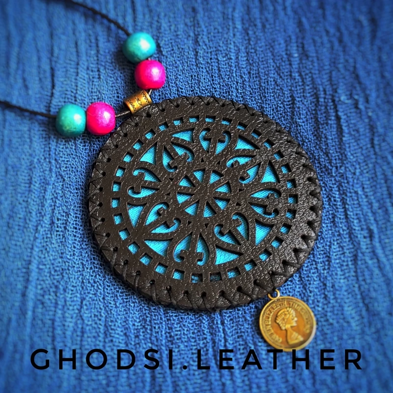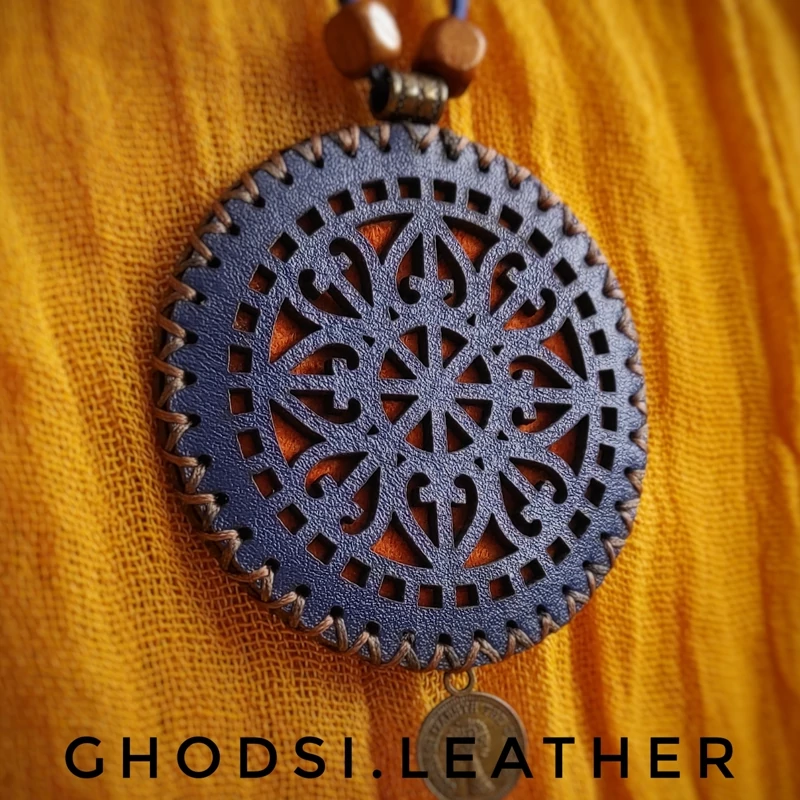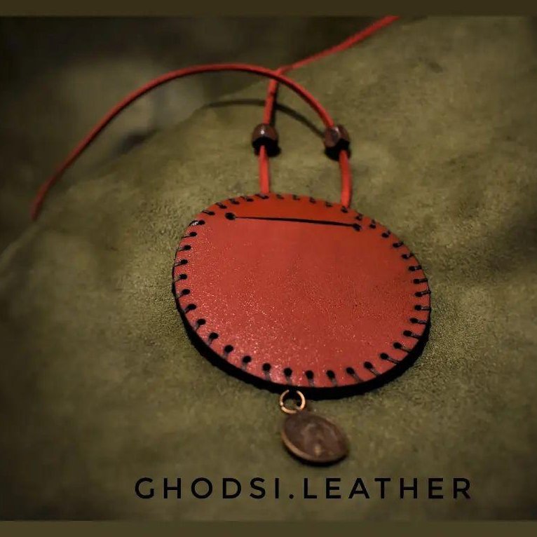 کیف دعا و گردن آویز دوخته شده از چرم طبیعی ،دستدوز ، قابل اجرا در رنگهای مختلف ، دارای فضای مخفی برای دعا و حرز ، داخل کیف مشخص نیست قسمتهای طرحدار دارای آستر می باشد