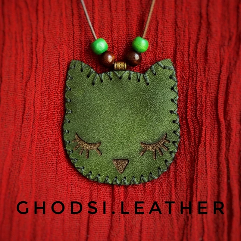 کیف حرز و دعا یا رومانتویی و گردنبند چرمی مدل عروسکی گربه دوخته شده از چرم طبیعی دارای جیب در پشت کار همراه با ارسال رایگان و بسته بندی،اگه رنگ یا سایز دیگه ای د نظرتونه میتونین در قسمت گفتگو پیام بدین