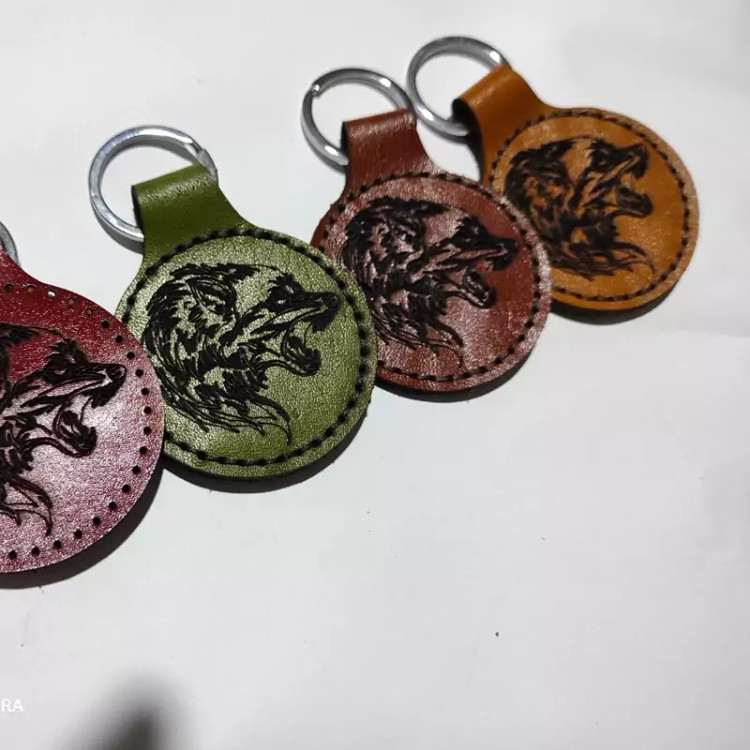 جاکلیدی طرح گرگ دوخته شده از چرم طبیعی گاوی ، کاملادستدوز در رنگهای مختلف با قیمت مناسب